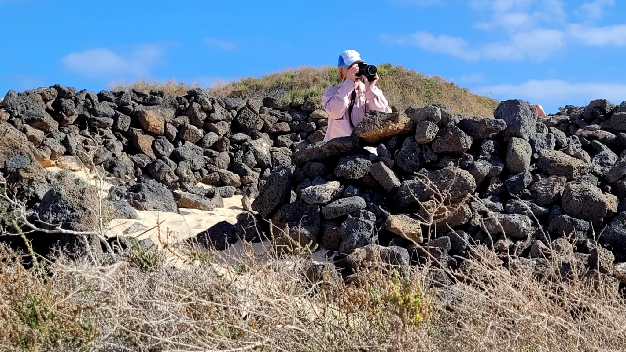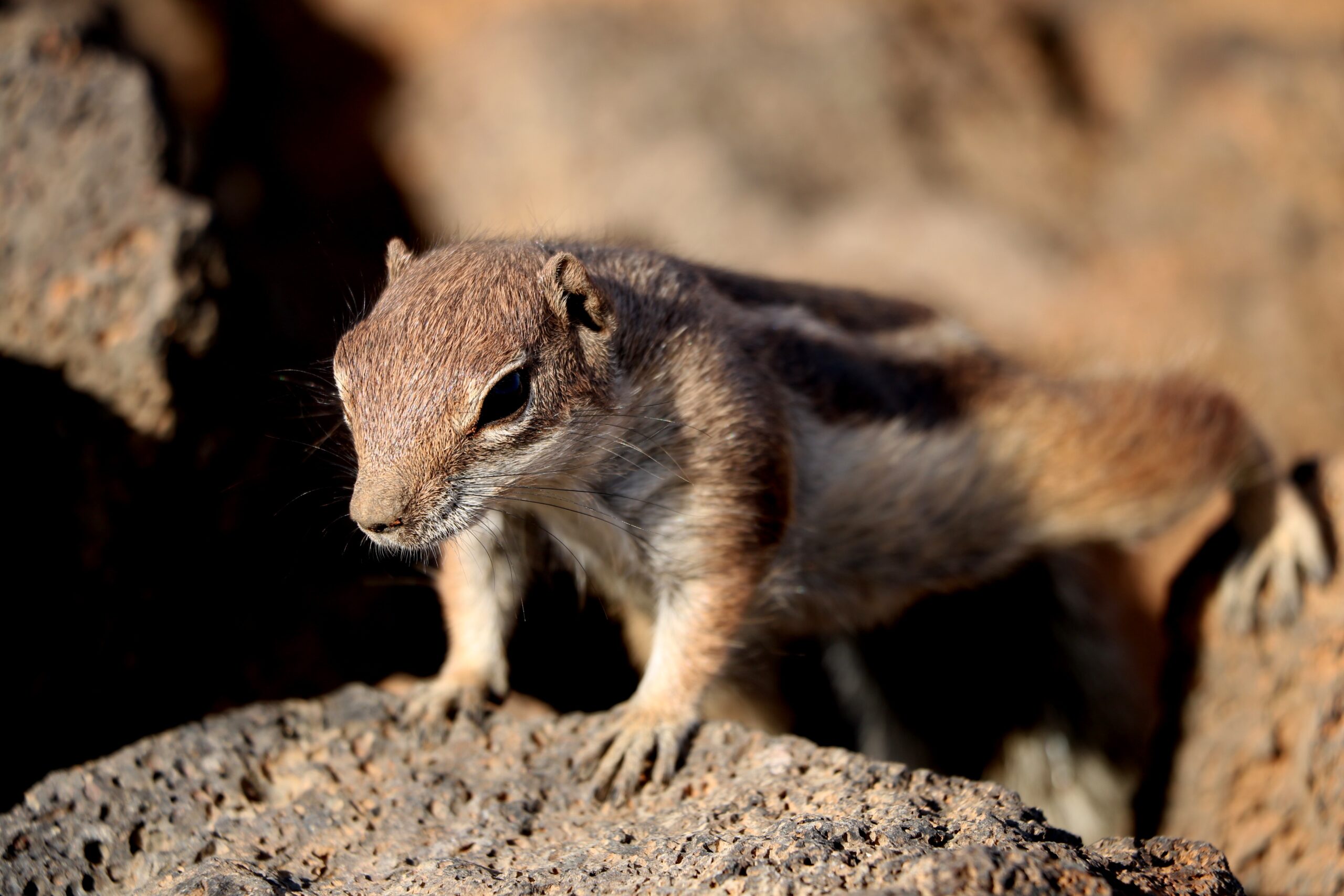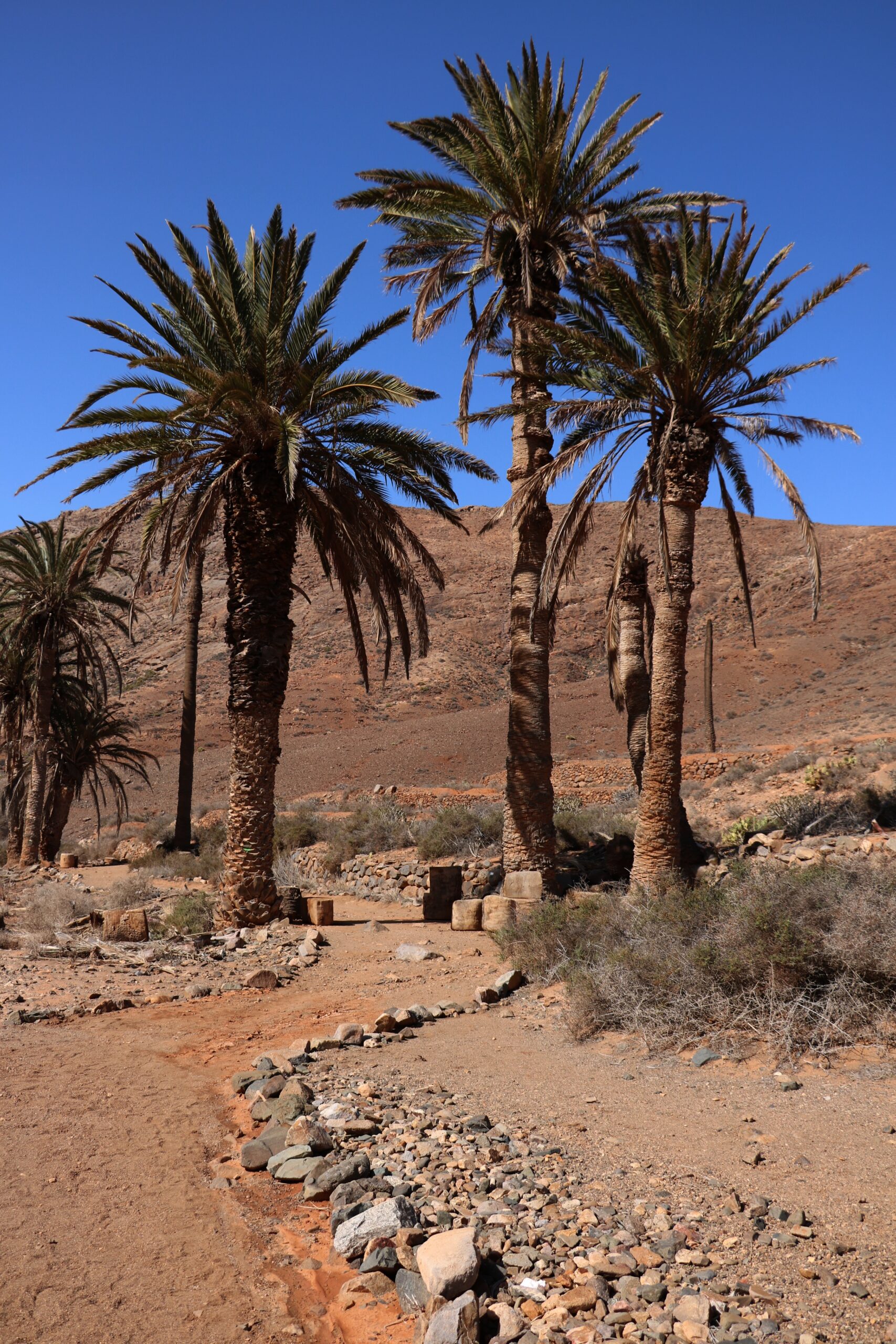 Drugi dzień zaczęliśmy od wędrówki kilkukilometrowym szlakiem Barranco de las Peñitas wzdłuż epizodycznej rzeki. Początkowy odcinek był nieco bardziej zielony i obfity (jak na Fuerteventurę) w roślinność. Im dalej, tym krajobraz stawał się bardziej surowy i skalisty. Po niedługiej wędrówce dotarliśmy do wąwozu, kamiennej tamy i kapliczki nad urwiskiem. Nie obyło się również bez bliskiego spotkania z odważnym stadem wiewiórek. Jeśli lubicie spacery to bardzo polecamy ten szlak na poznawanie wyspy z nieco innej perspektywy niż tylko ta nadmorska.