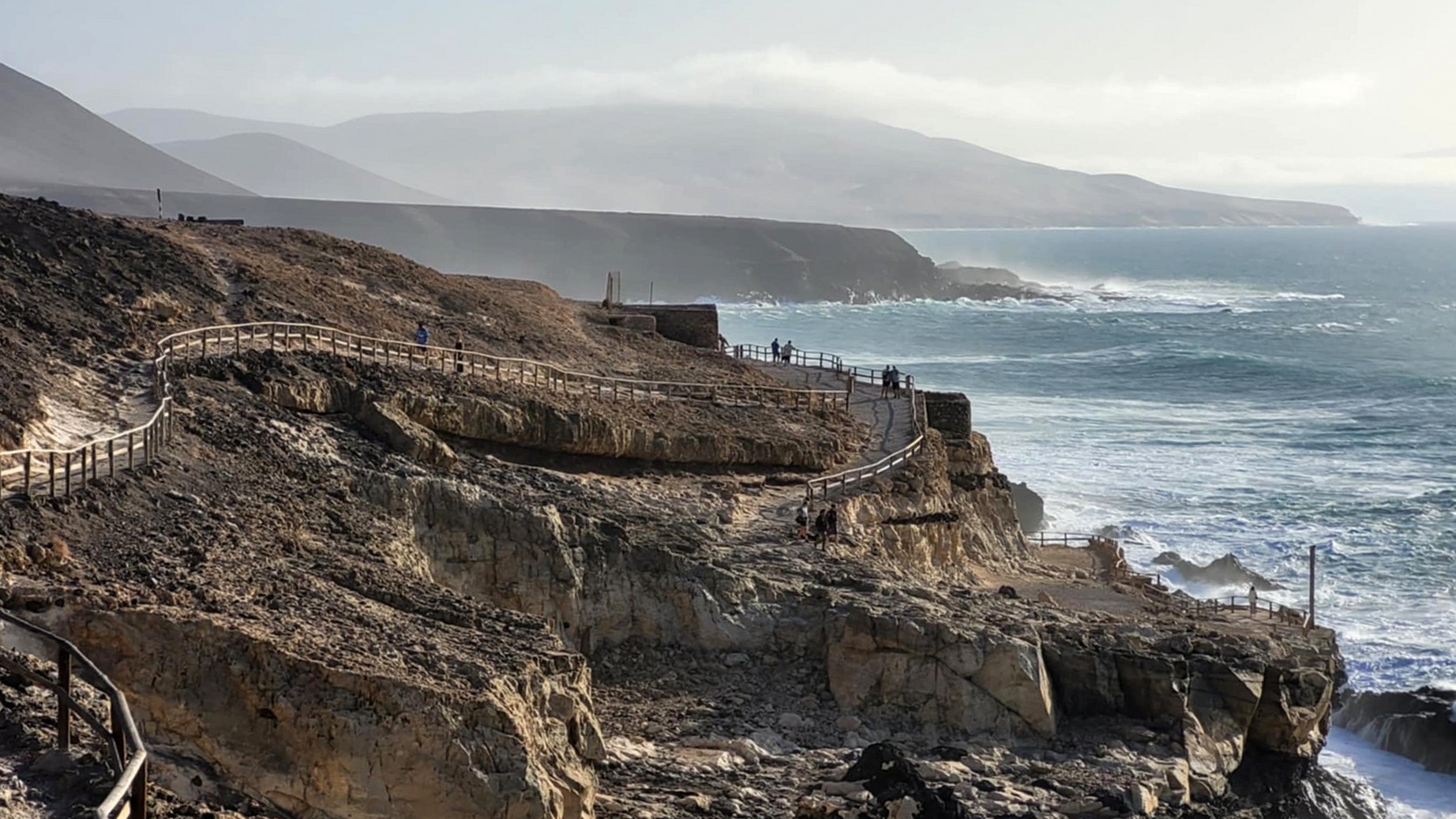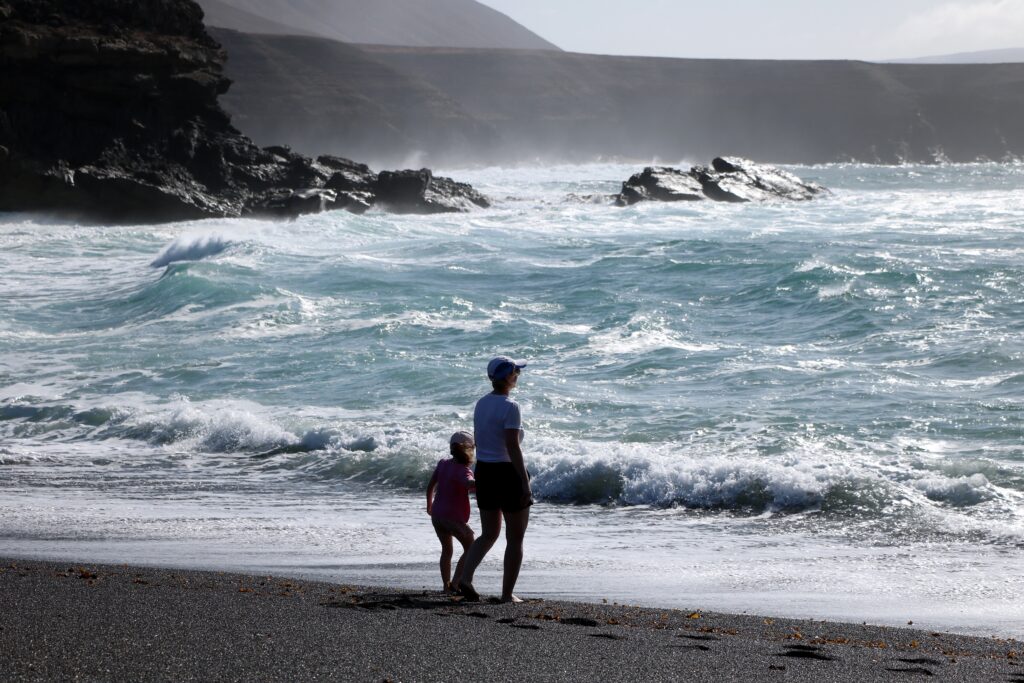 Gdy już byliśmy zmęczeni wędrówką, w drugiej części dnia wybraliśmy się do małej wioski rybackiej Ajuy. Na miejscu przed wjazdem do miejscowości jest spory parking, co oszczędziło nam męki parkowania. Sama wioska jest urokliwa, pełna historycznych domków oblepiających wybrzeże. Plaża choć niewielka, jest bardzo urokliwa ze względu na czarny kolor piasku. Tego dnia Ocean Atlantycki dał popis i pokazał swoją potęgę – woda była bardzo wzburzona. Można powiedzieć, że fale dawały prawdziwy spektakl. Z Ajuy wybraliśmy się szlakiem wzdłuż klifów w stronę jaskini – to była super przygoda z pięknymi widokami. Trasa jest krótka, a spektakularna – bardzo polecamy!