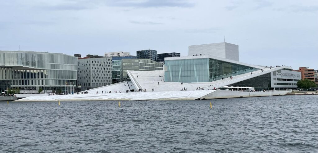 W dalszej częsci naszego rozpoznania Oslo wybrałyśmy się w stronę bardzo nowoczesnej dzielnicy Bjørvika i słynnej Opery nad Oslofjord. To kawałek miasta pełen różnorodnych wieżowców i ekstrawaganckich budynków mieszkalnych – wszystko razem tworzy unikalną całość. Nad samym brzegiem zlokalizowana jest Opera z nietypowym, wejściem na dach oraz muzeum MUNCH z punktem widokowym na centrum i fiord. Na terenie za diabelskim młynem znajduje się bar w stylu poznańskiego KontenerART – gdzie zakończyłyśmy zwiedzanie tego rewiru.