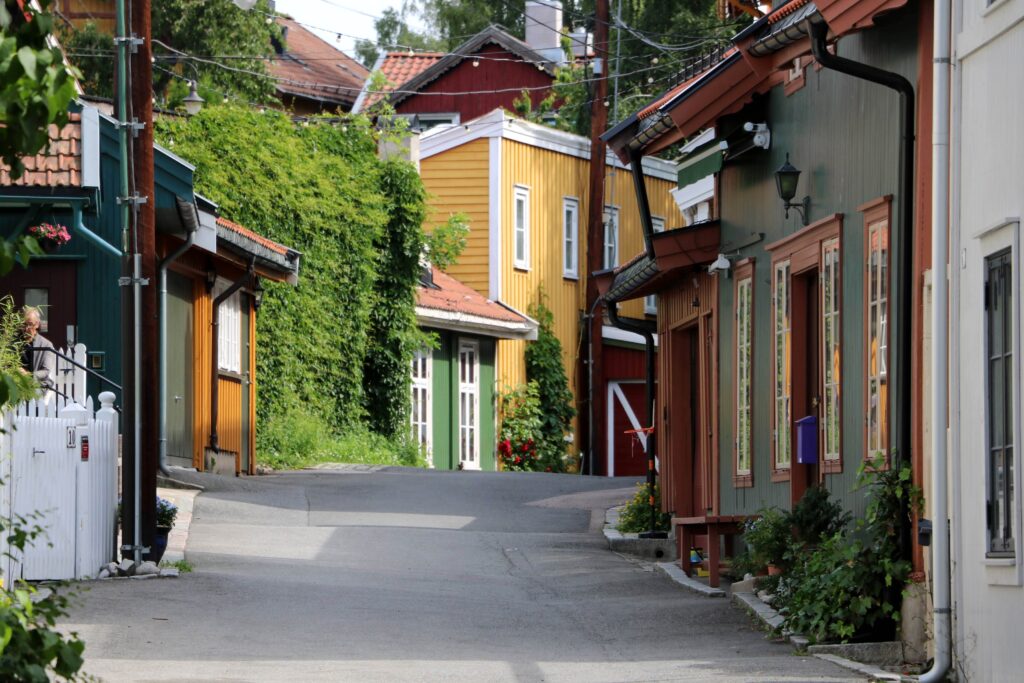 Ostatni dzień przed wylotem postanowiłyśmy zażyć rozrywek niczym mieszkańcy Oslo, czyli wylegiwać się na „plaży” nad fiordem. Trasę z hotelu w stronę kolejnej nowoczesnej dzielnicy Aker Brygge wykorzystałyśmy na przyjrzenie się kolejnej alternatywnej dzielnicy z klimatem, czyli Vulkan oraz przejście słynną uliczką z charakterystyczną historyczną zabudowa (podobną do Kampen), czyli Damsterdet. Jest to podobno klasyczna Instagramowa miejscówka i to prawda – trudno odmówić uroku tej uliczce.